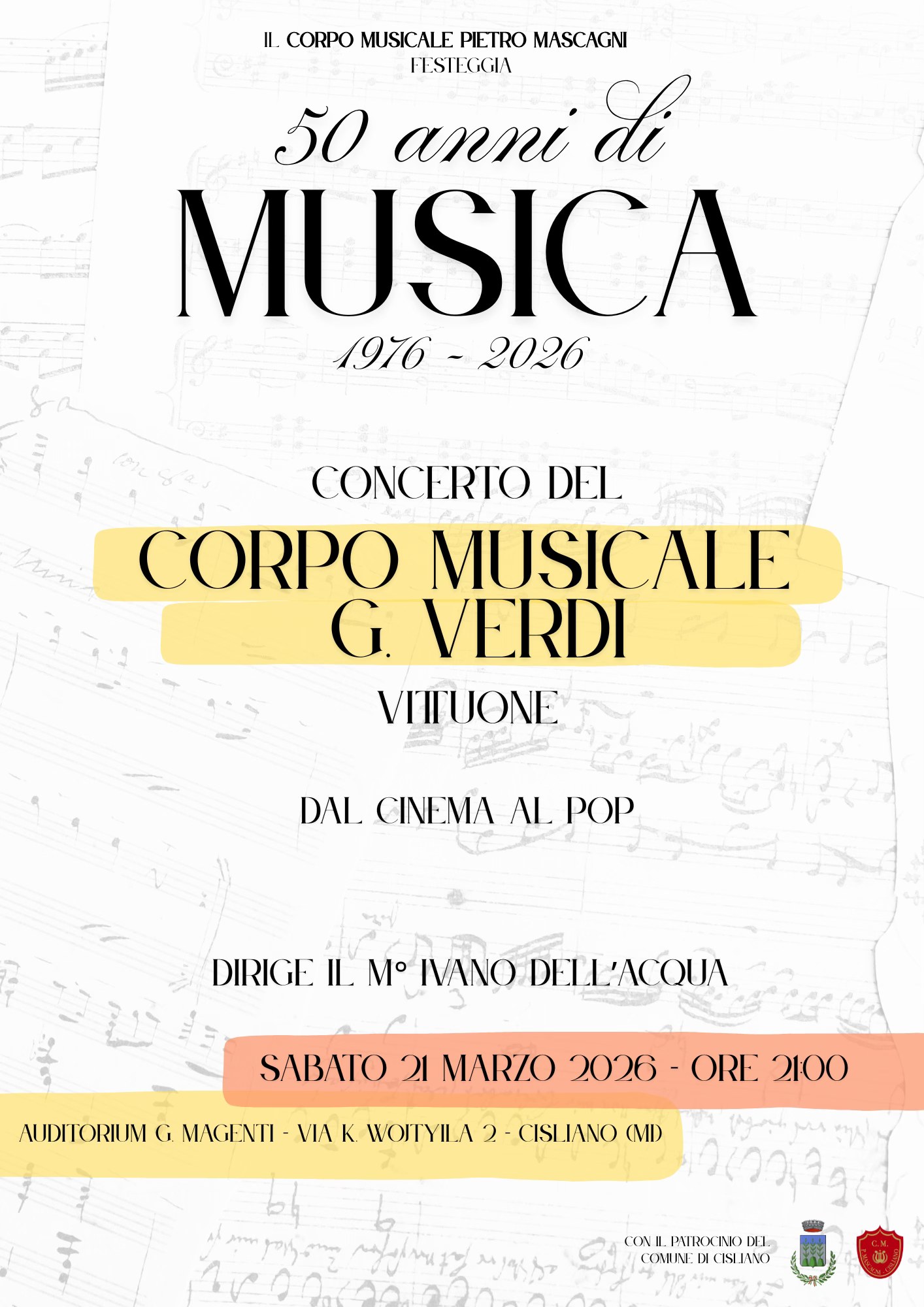 Cos'è: 50 anni di musica del Corpo Musicale Mascagni. Sabato 21 marzo, concerto del Corpo Musicale Verdi di Vittuone. .